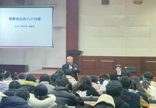 举办宪法专题讲座。邀请山东工商学院法学博士、硕士研究生导师张献勇教授做了《预算宪法的几个问题》的专题讲座,张献勇以学生熟悉的案例为切入点,系统讲述了预算宪法的起源、不同法系的国家预算宪法与配套的审查制度,让学生对预算宪法的实际运行过程与权力制约理论的有了更深地理解。张教授还结合世界各国预算宪法发展情况,着重介绍了中国预算宪法的实质与具有中国特色的运行机制,指出了目前立法存在的问题和不足,并给出了自己的见解供同学们讨论。