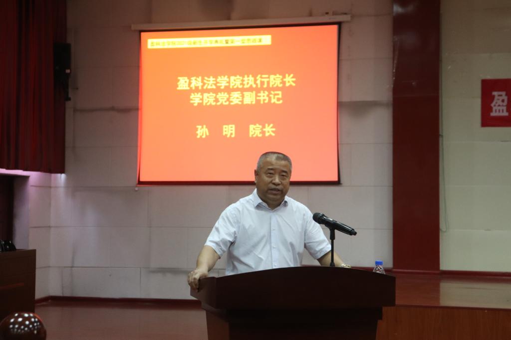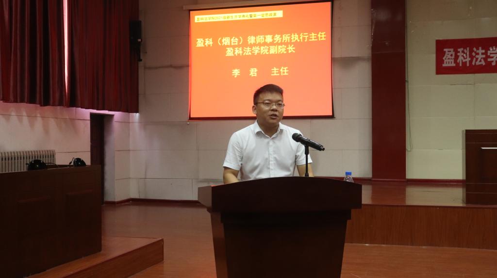 2021年9月14日下午,学院2021级新生开学典礼暨第一堂思政课在东校区模拟法庭举行。开学典礼采取线上线下相结合的方式举行,盈科律师事务所创始合伙人、主任、全球董事会主任、hg6999皇冠官网院长梅向荣在盈科律师事务所北京总部直播间献上了对hg6999皇冠官网新生的殷切寄语,党委书记姜德照、执行院长孙明、副院长刘芳,副院长、盈科律师事务所烟台执行主任李君出席会议。开学典礼由党委副书记鲁守栋主持,教师代表、优秀校友代表以及全体2021级本科生及研究生参加会议。